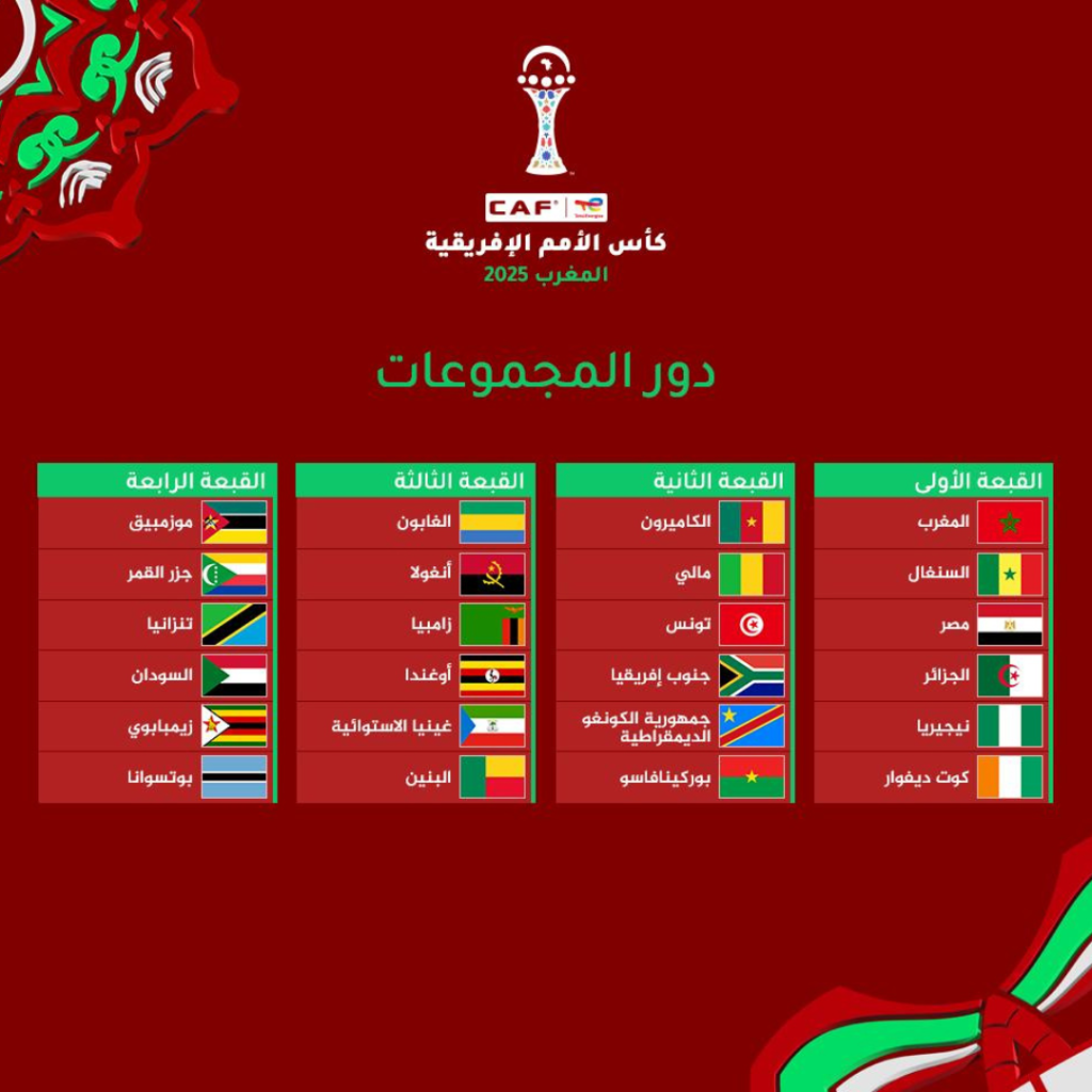 تتجه أنظار عشاق كرة القدم الإفريقية إلى مسرح محمد الخامس في الرباط، حيث ستُجرى قرعة دور المجموعات لنهائيات كأس الأمم الإفريقية 2025 يوم الاثنين، 27 يناير 2025. يشارك في البطولة 24 منتخبًا، سيتم توزيعهم على ست مجموعات، كل مجموعة تضم أربعة فرق. يتأهل إلى الدور الثاني المتصدر ووصيفه، بالإضافة إلى أفضل أربعة منتخبات تحتل المركز الثالث.