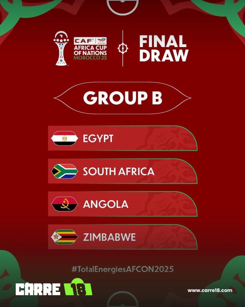 - المجموعة الثانية: مصر، جنوب إفريقيا، أنغولا، زيمبابوي